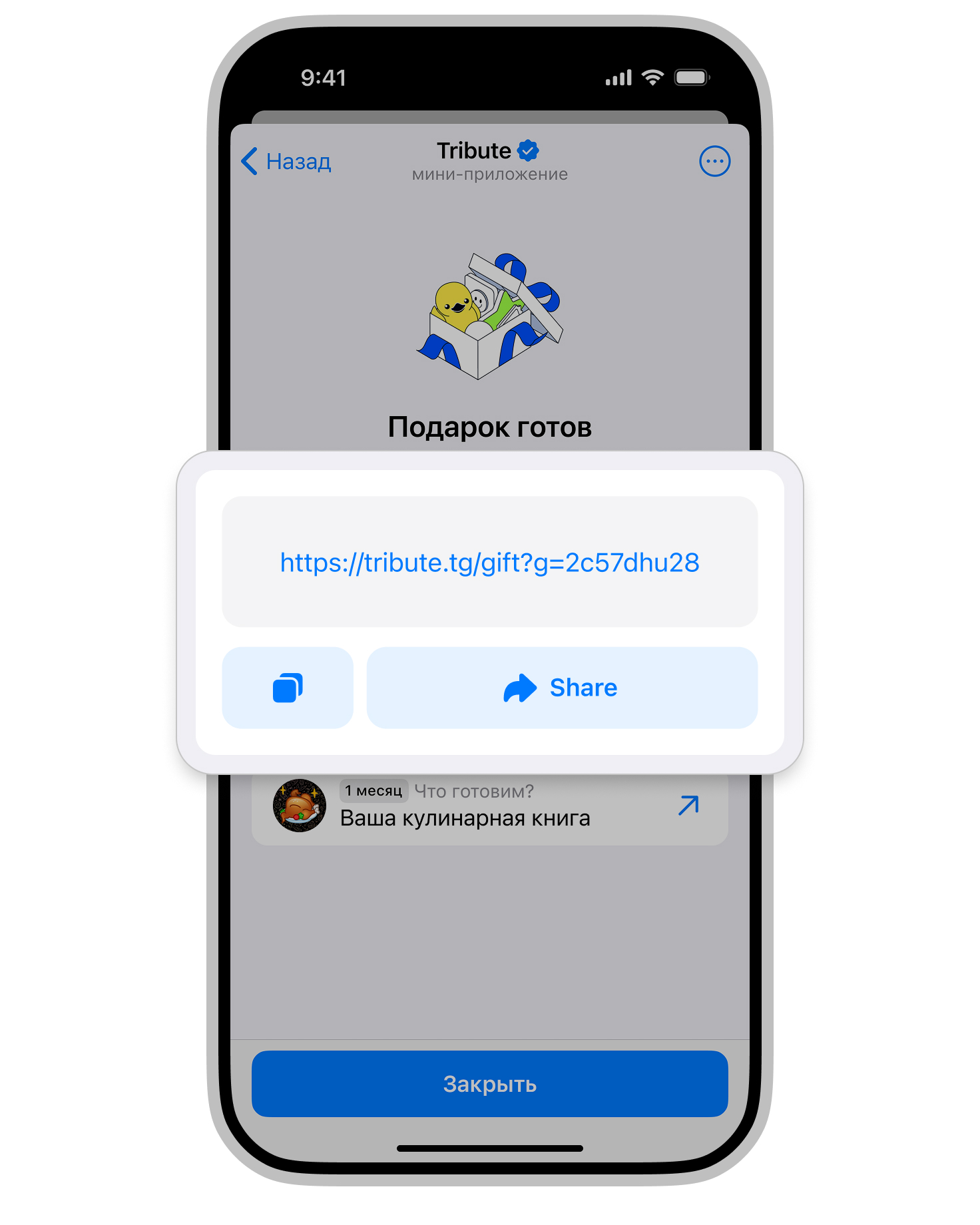 3. Отправить ссылку получателю, чтобы он мог сразу подключиться и начать пользоваться подпиской.
